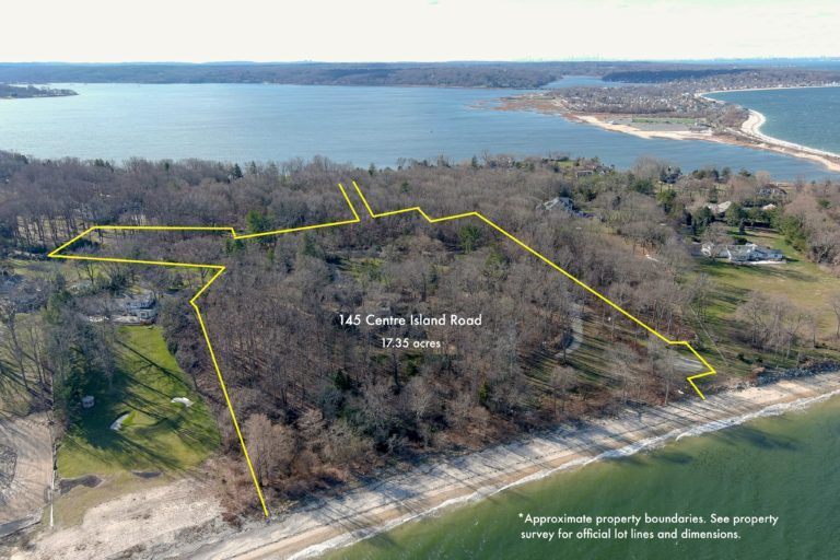 Rare opportunity to own one of the last and largest waterfront parcels on secluded Centre Island with over 560 feet of sandy shoreline. Surrounded by multi-million dollar homes with panoramic views of Long Island Sound, this 17+ acre lot is the perfect footprint to build a new private waterfront home or renovate the existing modern residence, two-bedroom pool house and 3-car detached garage all designed by renowned mid-century architect Benjamin Thompson of Walter Gropius’s The Architects Collaborative (TAC). There is also an existing 3-bedroom caretaker’s ranch-style home, FAA licensed helipad and approved plans for a 2,000 sq. ft. boat house. Utilities in place and potential to subdivide as well.